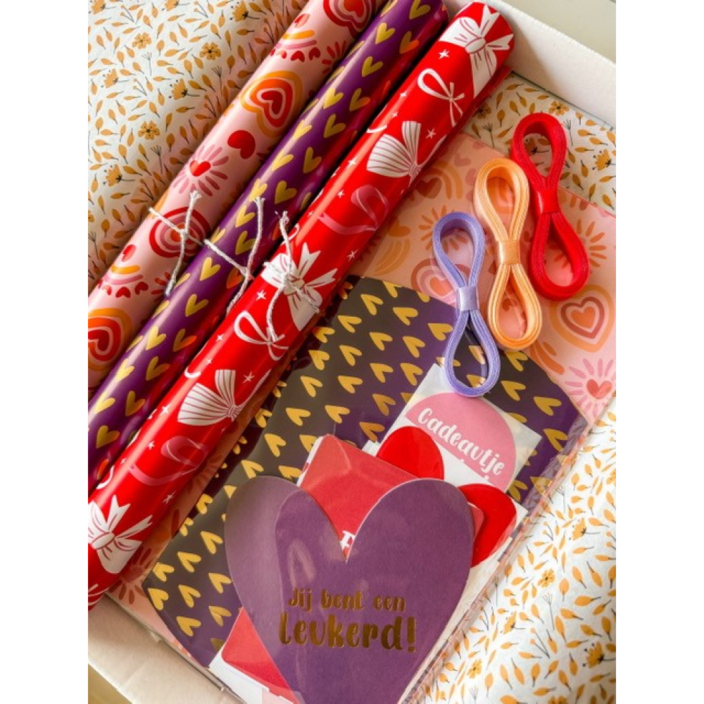 Met dit voordeelpakket maak je van elk cadeau een echte blikvanger. Je ontvangt o.a. perfect op elkaar afgestemd inpakpapier, lint stickers, zodat je direct alles bij de hand hebt om mooi en verzorgd in te pakken. Het liefdevolle thema zorgt voor een warme en stijlvolle uitstraling en is tegelijkertijd geschikt voor elk moment waarop je iemand wilt verrassen. Ideaal als je snel klaar wilt zijn én een onvergetelijke indruk wilt maken.